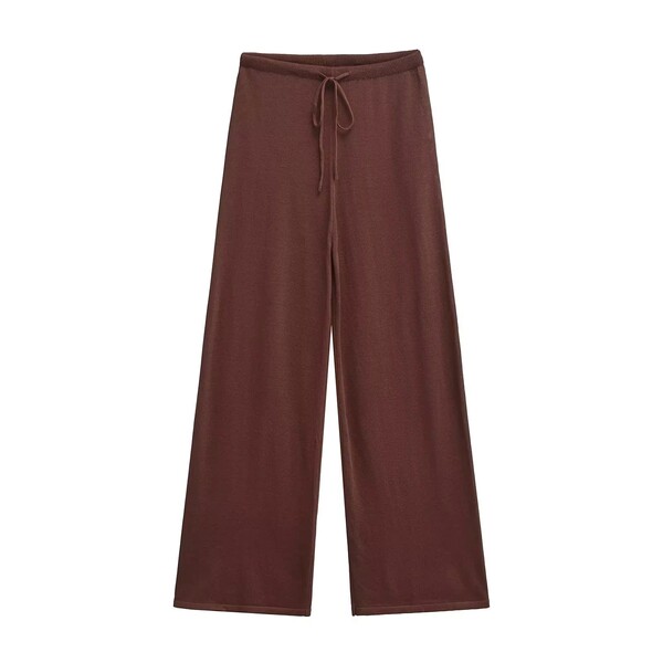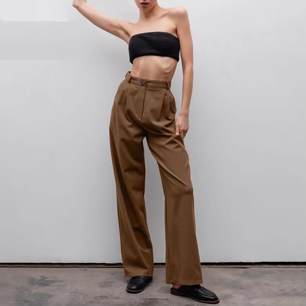 2Pcs Elegant Womens Brown Straight Leg Pants