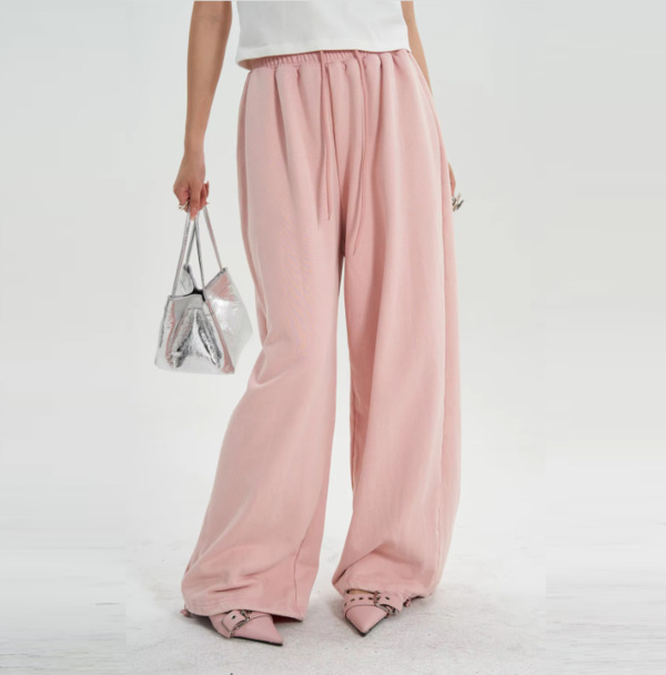 2Pcs Womens Lazy Style Loose Color Collision Wide Leg Casual Pants